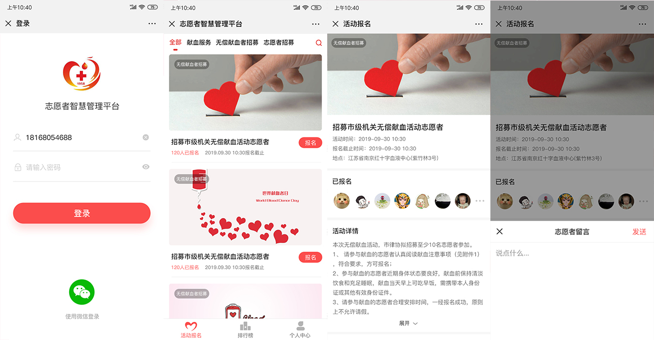 志愿者招募、活动发起、报名参与、定位签到,积分核算
