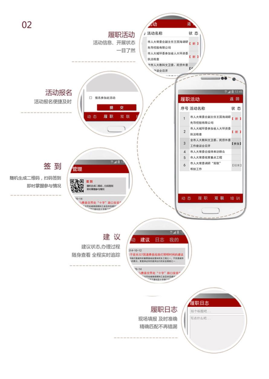 儒道智慧人大,将人大履职主体、履职过程、履职成果、履职机制等有效融合,实现人大代表对议案建议办理和民生实事项目全程可视、可议、可评,为人大代表密切联系群众、履职互动交流、保障知情知政等提供更加便捷、智能、高效的信息渠道。功能包括:代表之家,大会履职,闭会期间履职,网上双联,议案建议系统等