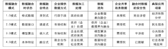表1 政务数据与企业数据融合利用模式对比分析![]()